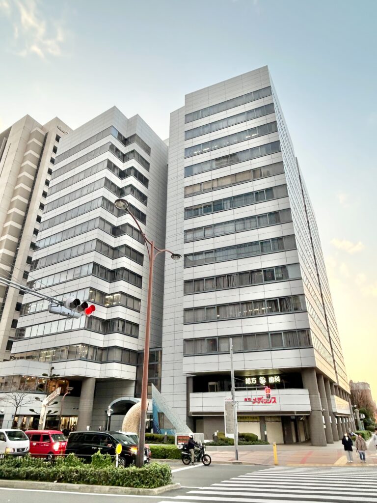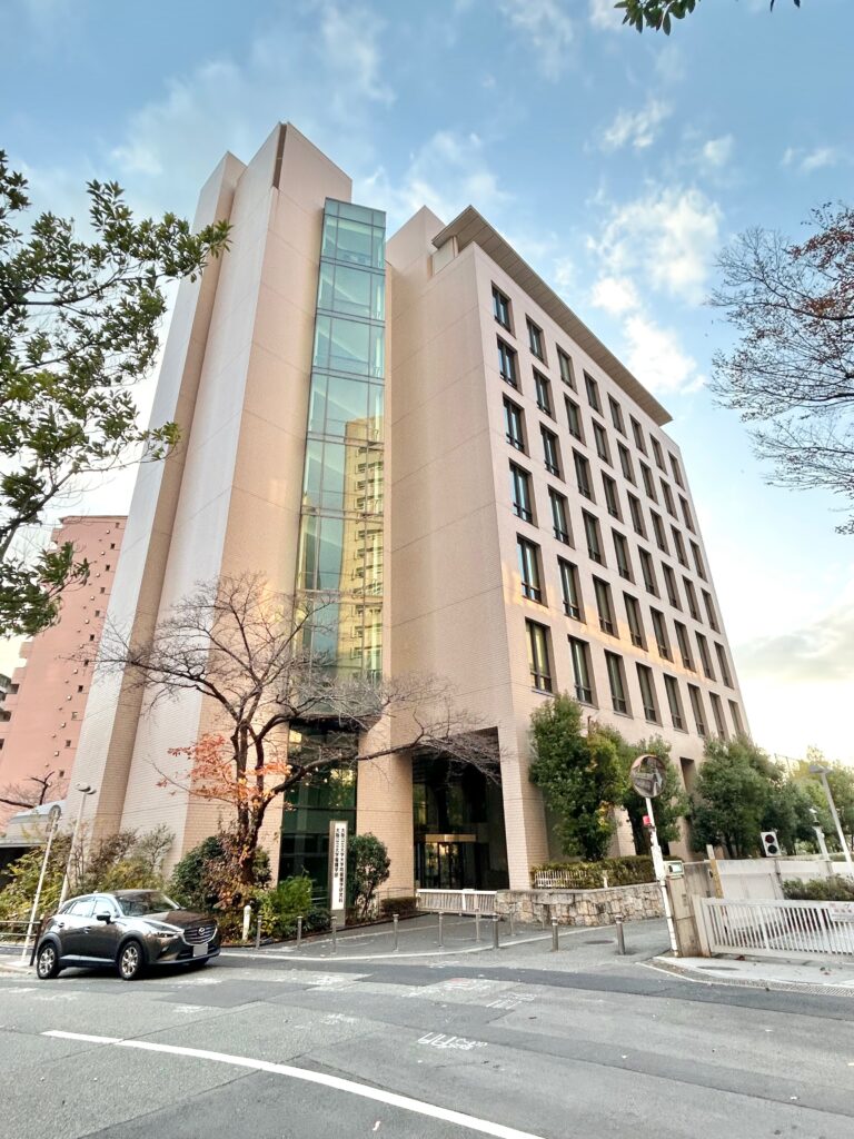 2025年4月にできたばかりの新棟です。ラーニングコモンズ(5・6F)や自習室(12F)があります。ファミリーマートもこの建物の3Fにあります。