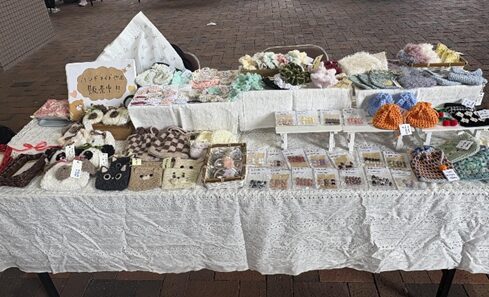 当日はたくさんの手芸作品が机に並び、とっても素敵ですよ!