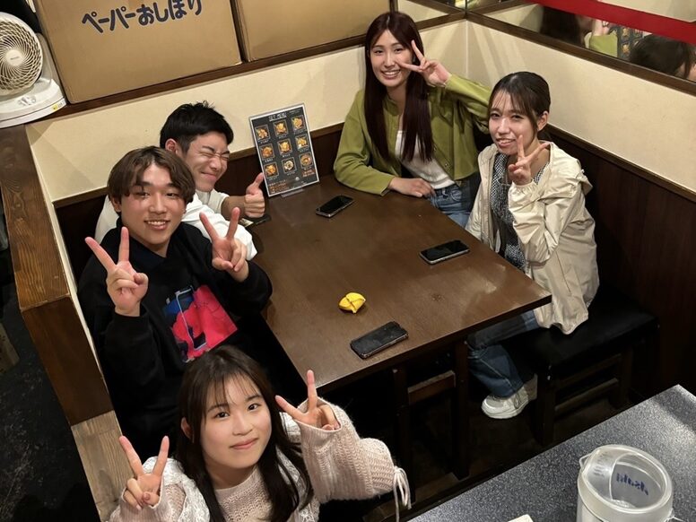 日本拳法部中百舌鳥支部では、部活動の時間だけでなく、練習後や休日でのプライベートの付き合いも盛んです。練習後にOBさんが経営している白鷺門前の「食事処新居」で、OBさんのご厚意でアフターを行っています。部活動で汗を流した後、部員たちでご飯を食べる時間はとても充実しており、部員同士の親睦を深めています。アフター以外でも、カラオケ、BBQ、USJなど交流の機会がたくさん設けられています。
